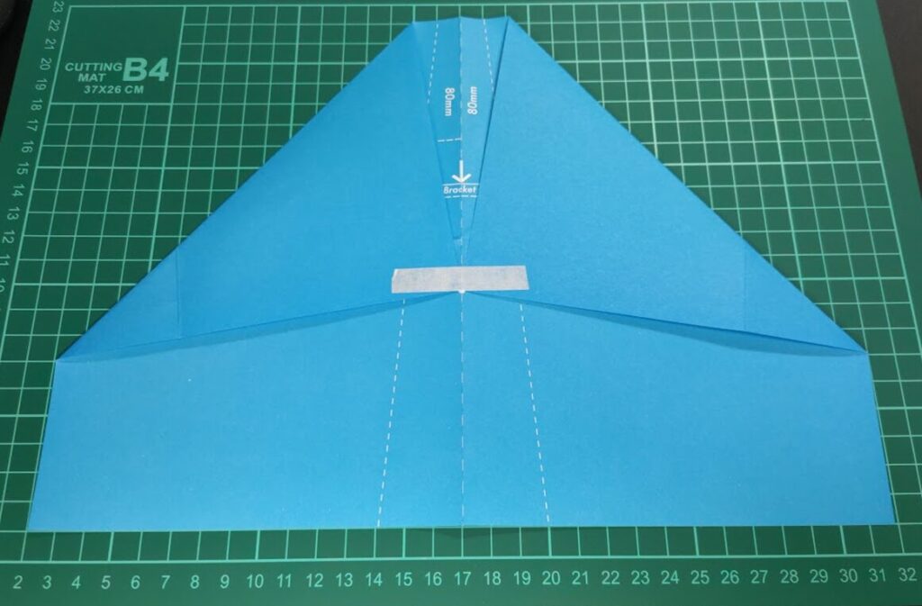 紙飛行機の胴体部分を はさむように挟み、テープで固定するだけ。