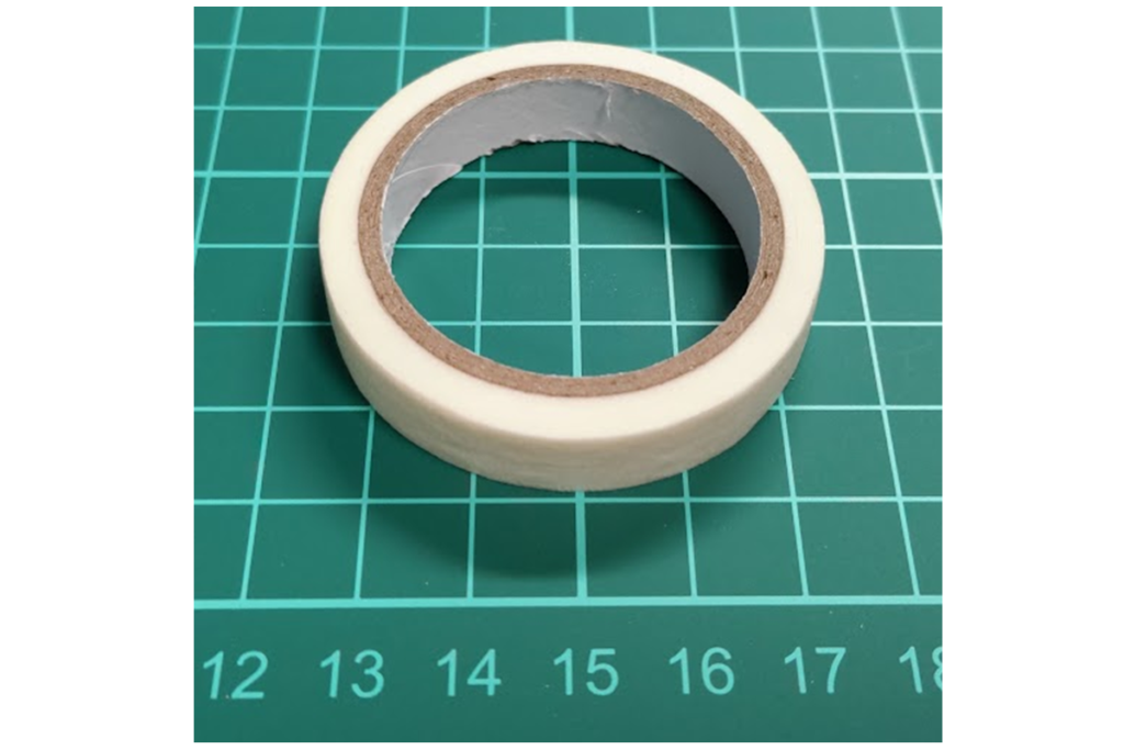 パワーユニットを紙飛行機へ、これで貼り付ける。