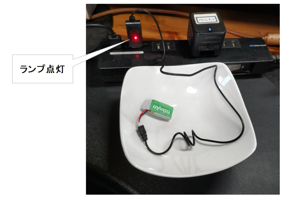 充電中はUSBのコネクター部にランプが点灯し、終わると消灯します。