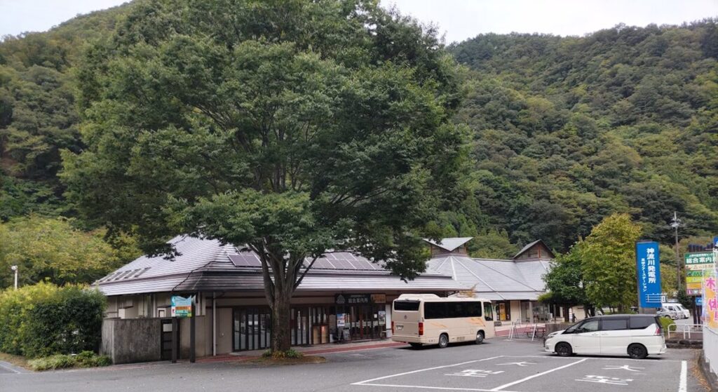 集合場所は「川の駅・上野」にある上野村産業情報センター総合案内所です。