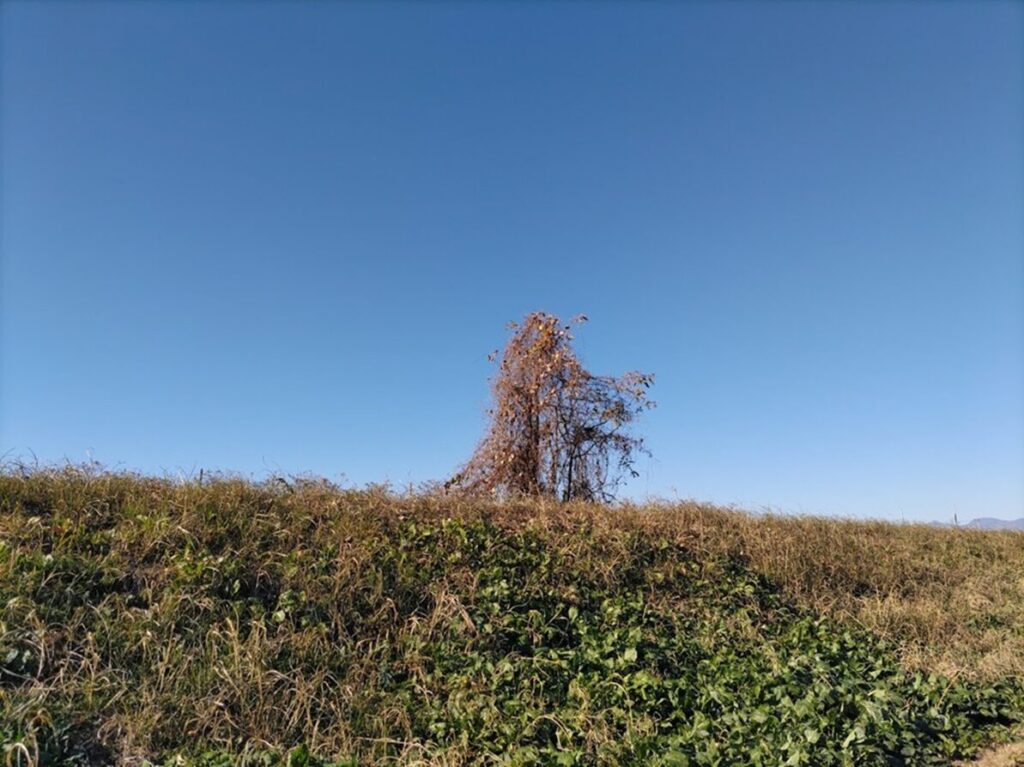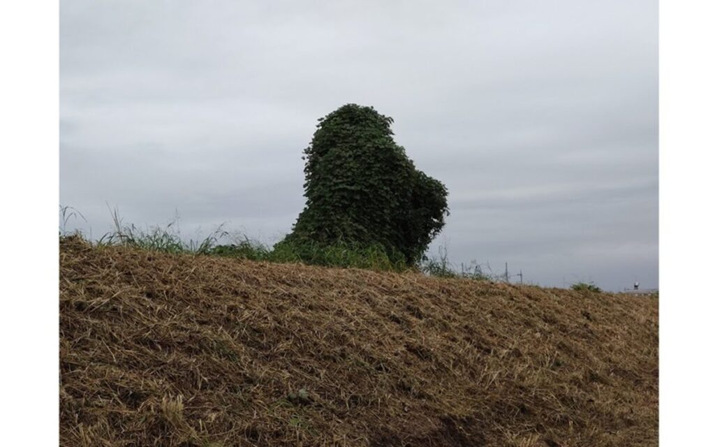 夏には、クズにおおわれていた木。