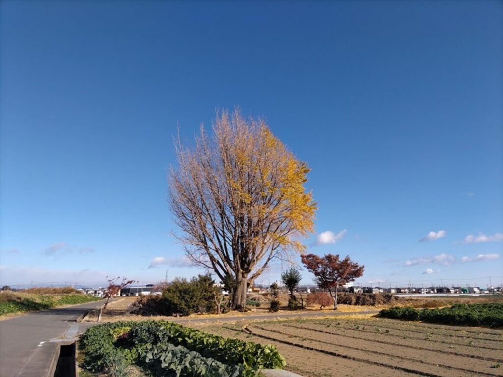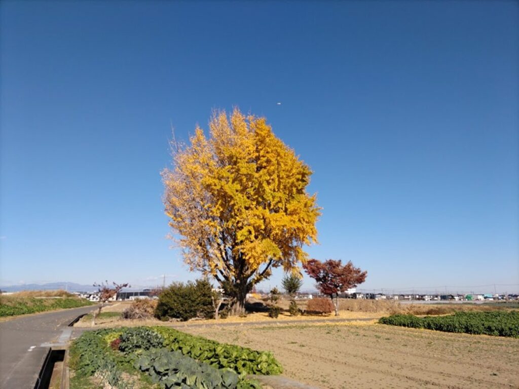 散歩道に大銀杏がある。
