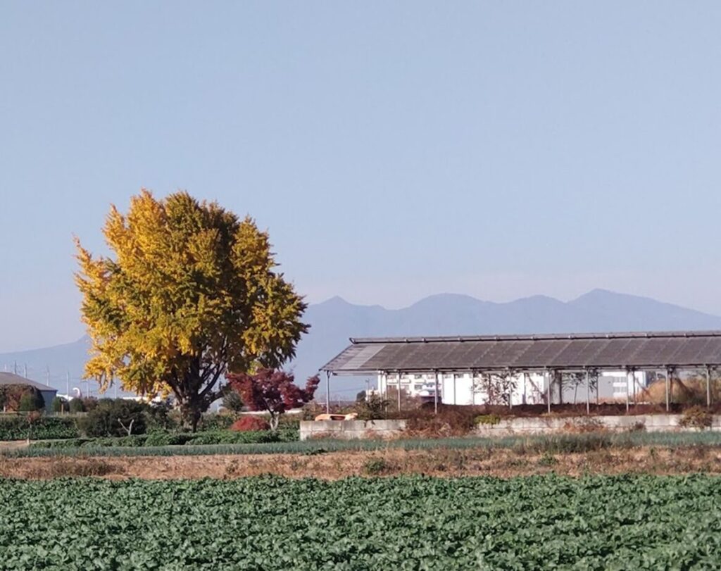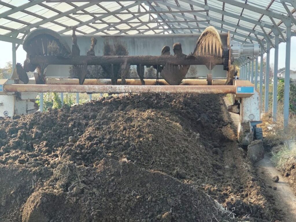 銀杏の木の近くにある小屋では、たい肥を作っている。